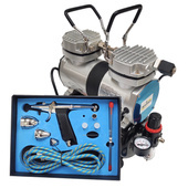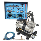 Zestaw do aerografi kompresor TC20 bez butli + AB-130K + AB-138 + Stojak + Zbiornik 502 + Szczoteczki 505