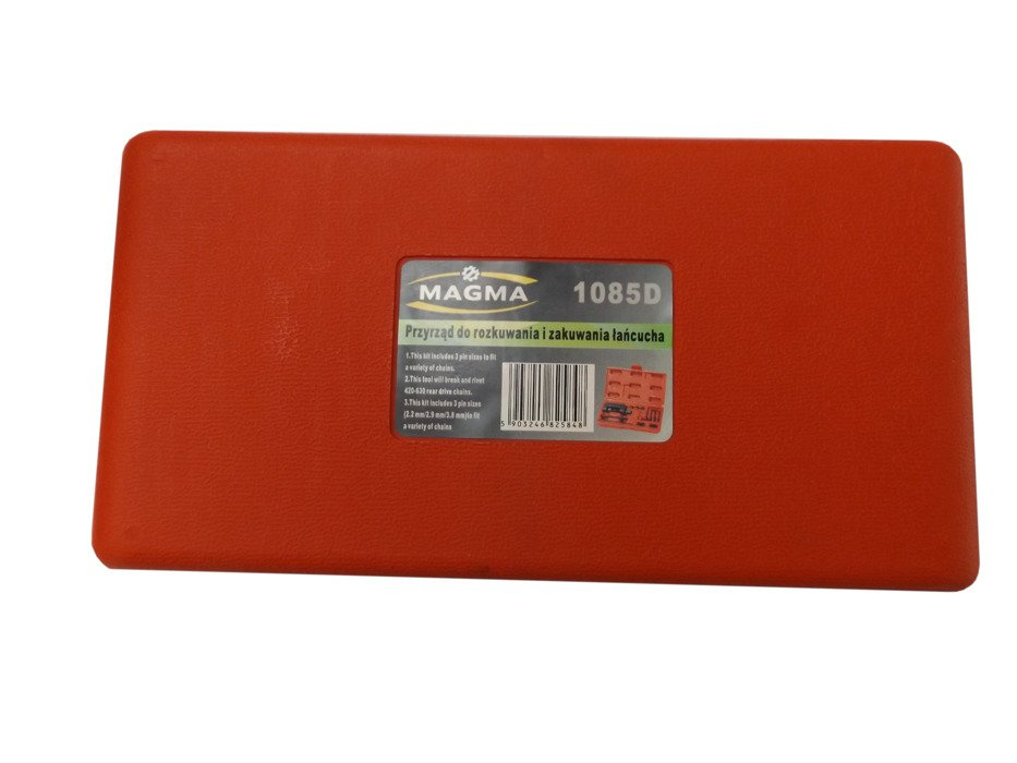 Zestaw do zakuwania łańcuchów, nitownica zakuwarka łańcuchów motocyklowych marki Magma.