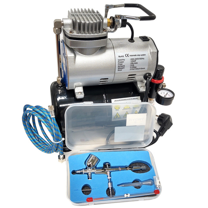 - kompresor z butlą 3L wraz z aerografem AB203 z dyszą 0,3