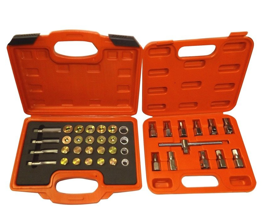 Zestaw do naprawy korków olejowych 64 elementowy.