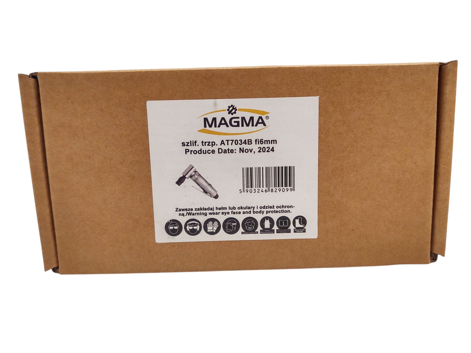 Profesjonalnie wykonana szlifierka pneumatyczna marki MAGMA POLSKA.  Szlifierka posiada wygodną rękojeść izolujące od zimna i wibracji, oraz przedłużone wrzeciono. Doskonale nadaje się do frezów wysokoobrotowych, pilników obrotowych oraz ściernic trzpieniowych. Urządzenie posiada przycisk typu bezpiecznego co zapobiega przypadkowemu włączeniu (automatycznie wraca po zwolnieniu).