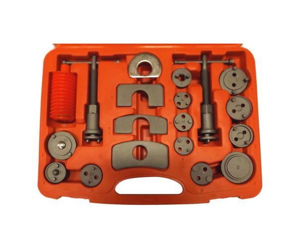 Zestaw wyciskania tłoczków hamulcowych 35 elementowy marki Magma + zestaw do odpowietrzania hamulców.