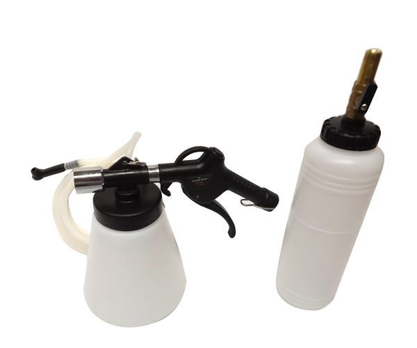 Przyrząd z jednej strony podłączany jest do sieci sprężonego powietrza, z drugiej do odpowietrznika układu hamulcowego. Wytworzone w zbiorniku podciśnienie sprawia, że płyn zostaje wyssany.