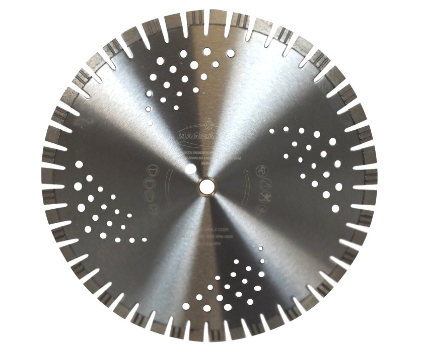 Zęby tarcz posiadają 25% diamentu syntetycznego, które prawidłowo rozmieszczone w segmencie powodują efektywny wzrost szybkości cięcia.