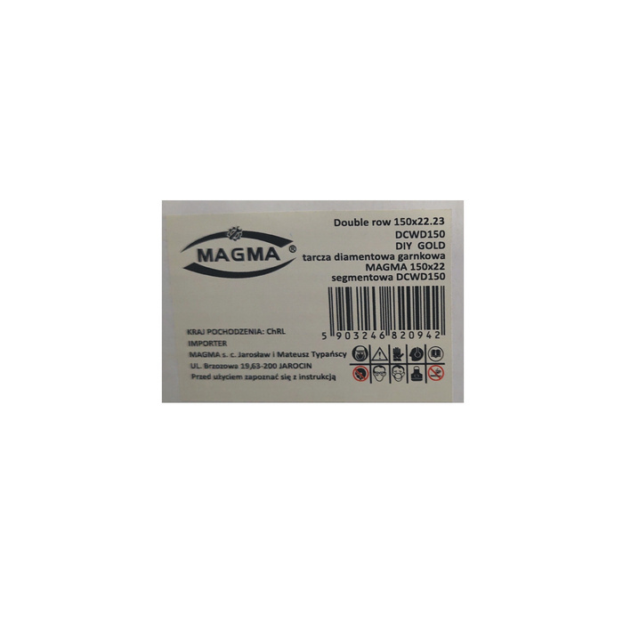 Tarcza diamentowa segmentowa garnkowa 150x22,23 model DCWD150 marki Magma .