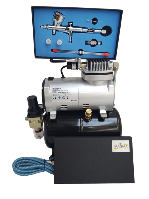 Zestaw malarski kompresor 20T z butlą 3L z aerografem AB-180S marki Magma.