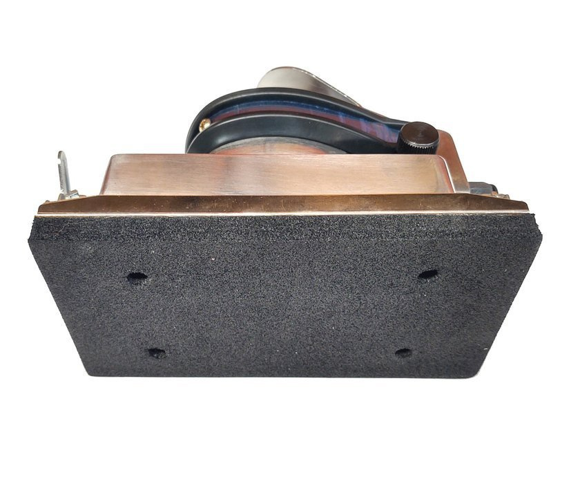 Wyjątkowo poręczna prostokątna szlifierka oscylacyjna z dobrym mocowaniem papieru. Służy do szlifowania powierzchni drewnianych i metalowych. Jej zaletą jest solidna, masywna konstrukcja oraz długa żywotność. Od spodu wykonana z miękkiego materiału, który nie ulega trwałemu odkształcaniu.
