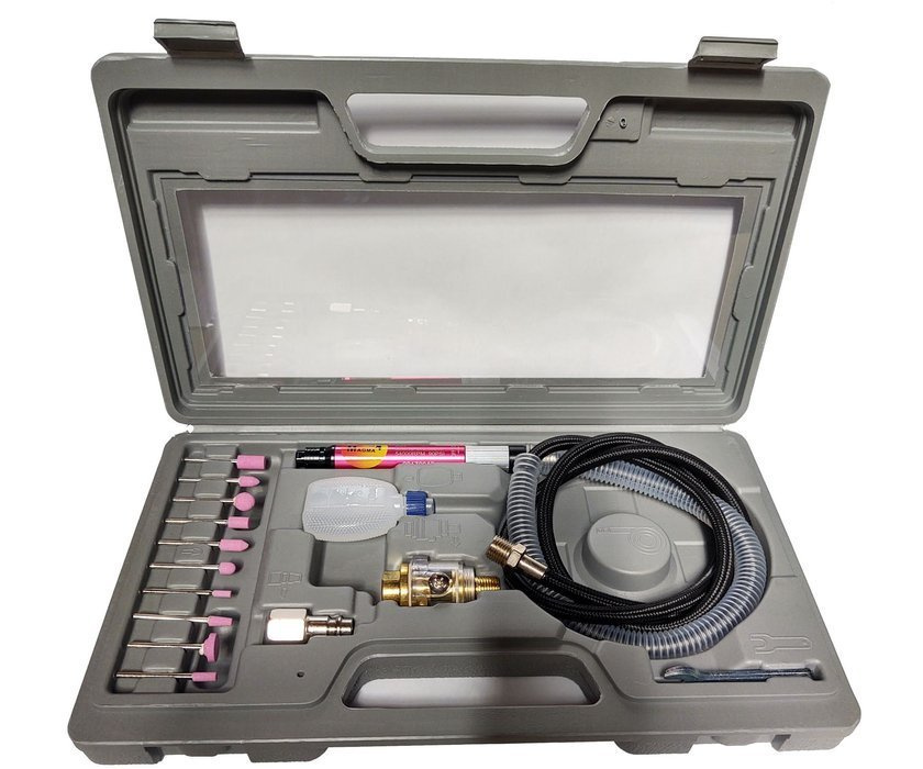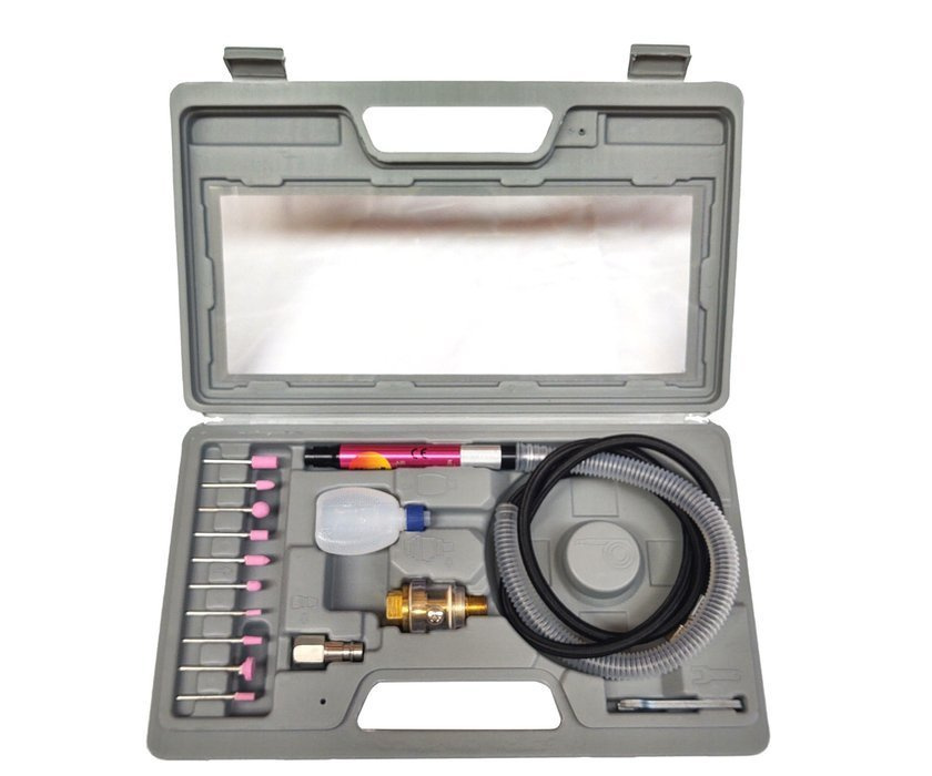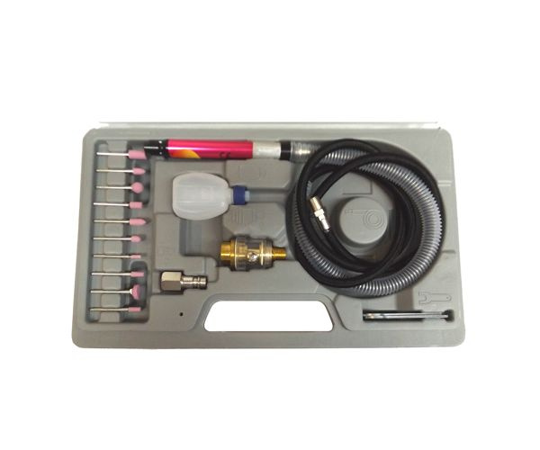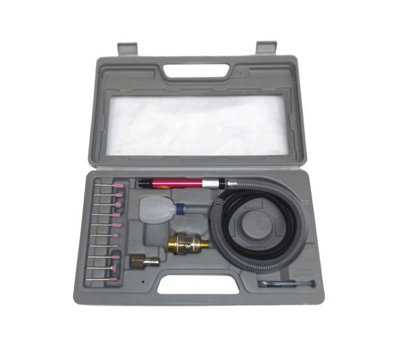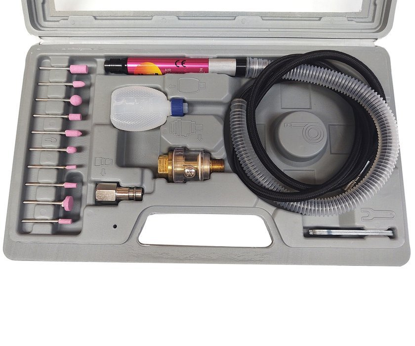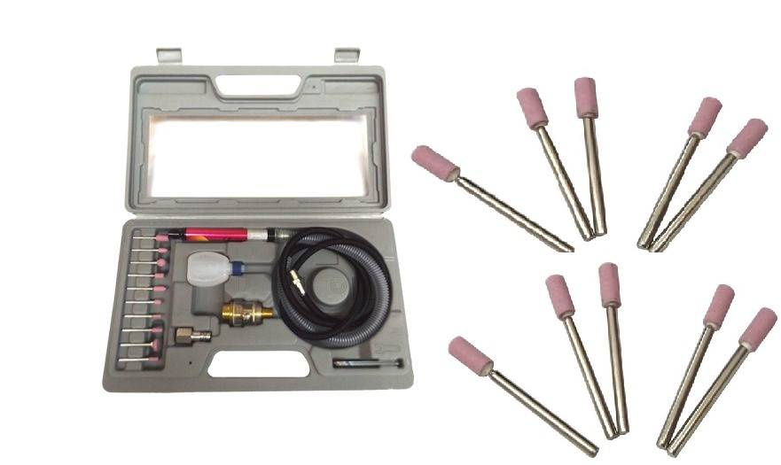 Szlifierka pneumatyczna trzpieniowa z kamieniami AT010K palcowa micro palcowa mini + 10 sztuk Kamienie walcowe na trzpieniu 5x10x3 granulacja 80