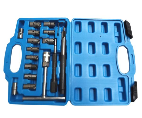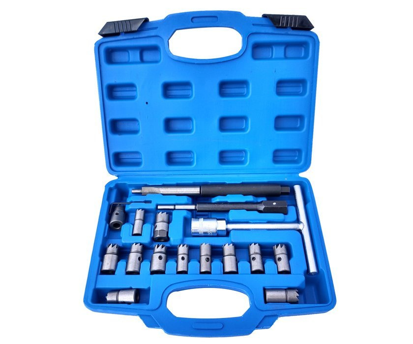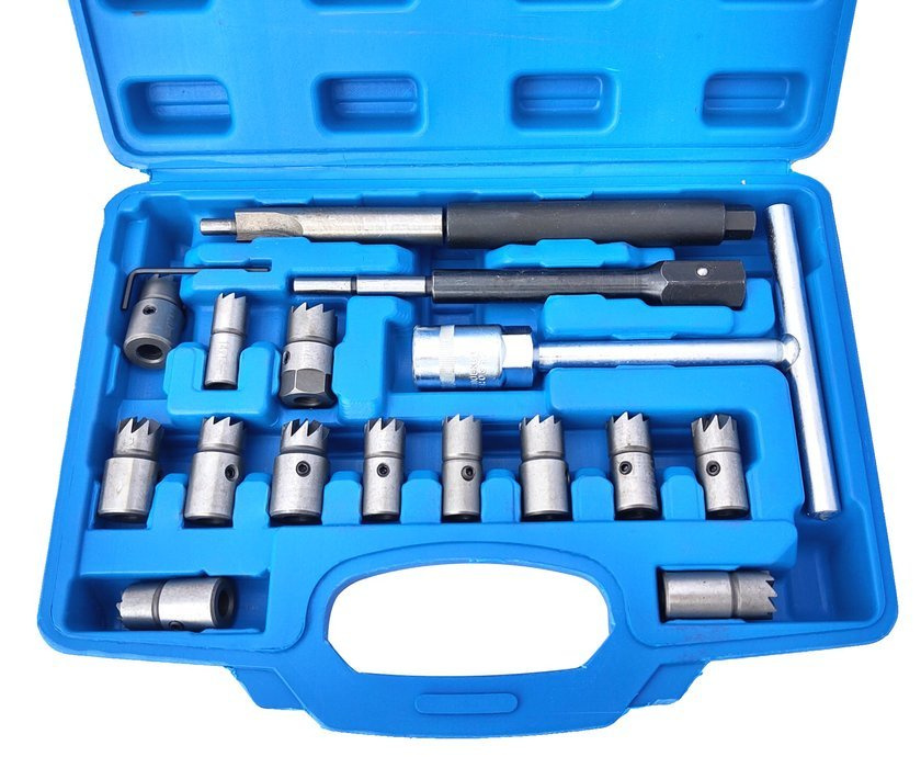 Zestaw frezów frezy do gniazd wtryskowych wtryskiwaczy 17el. + szczotki do czyszczenia gniazd wtryskiwaczy