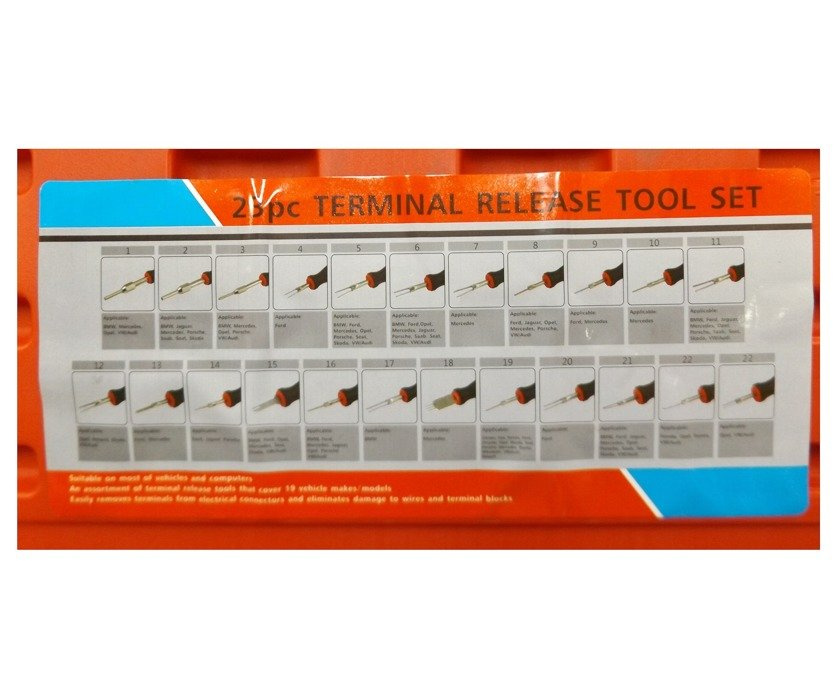 Zestaw 23 precyzyjnych narzędzi do wtyczek prądowych od czujników ABS, systemów audio itp.
