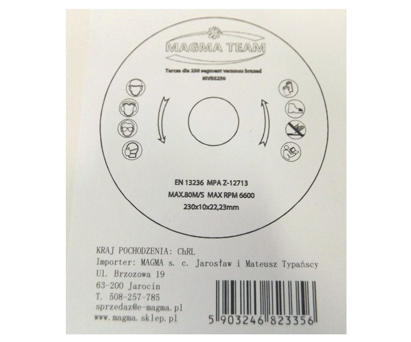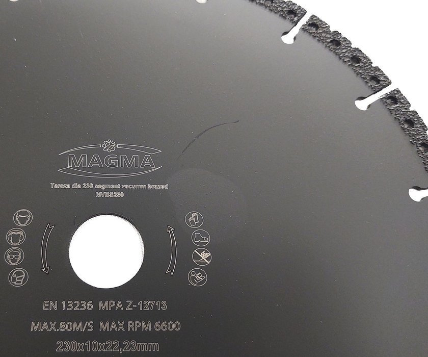 Tarcza diamentowa 230mm vacuum segmentowa do stali model MVBS + 230 marki Magma.