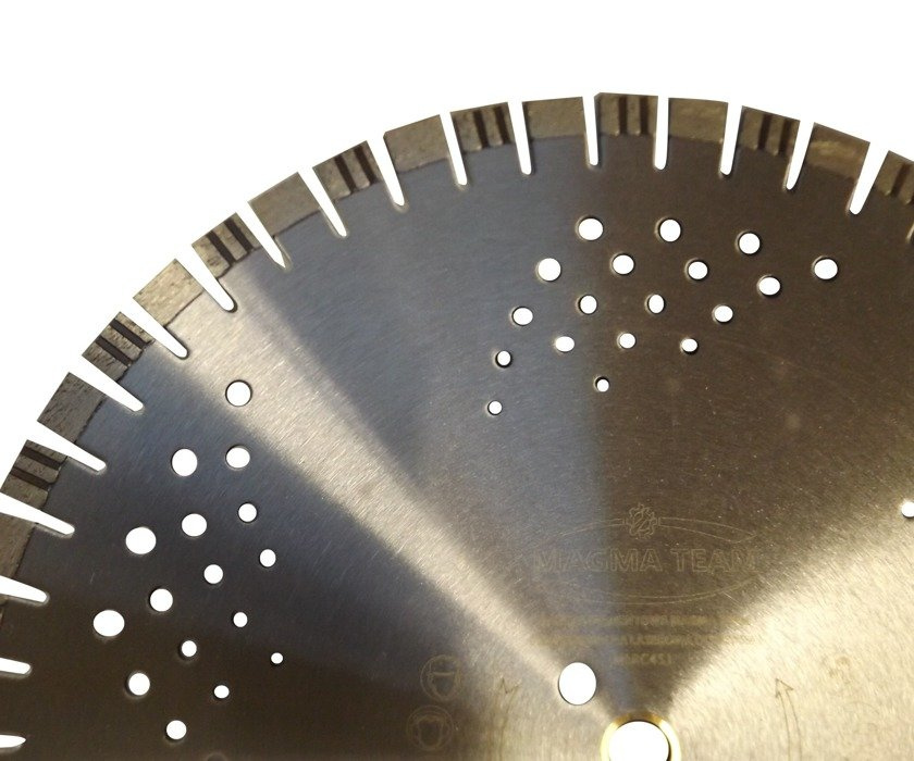Zęby tarcz posiadają 25% diamentu syntetycznego, które prawidłowo rozmieszczone w segmencie powodują efektywny wzrost szybkości cięcia.