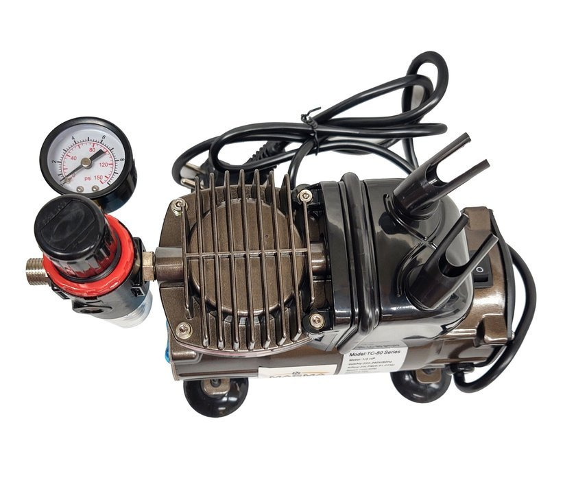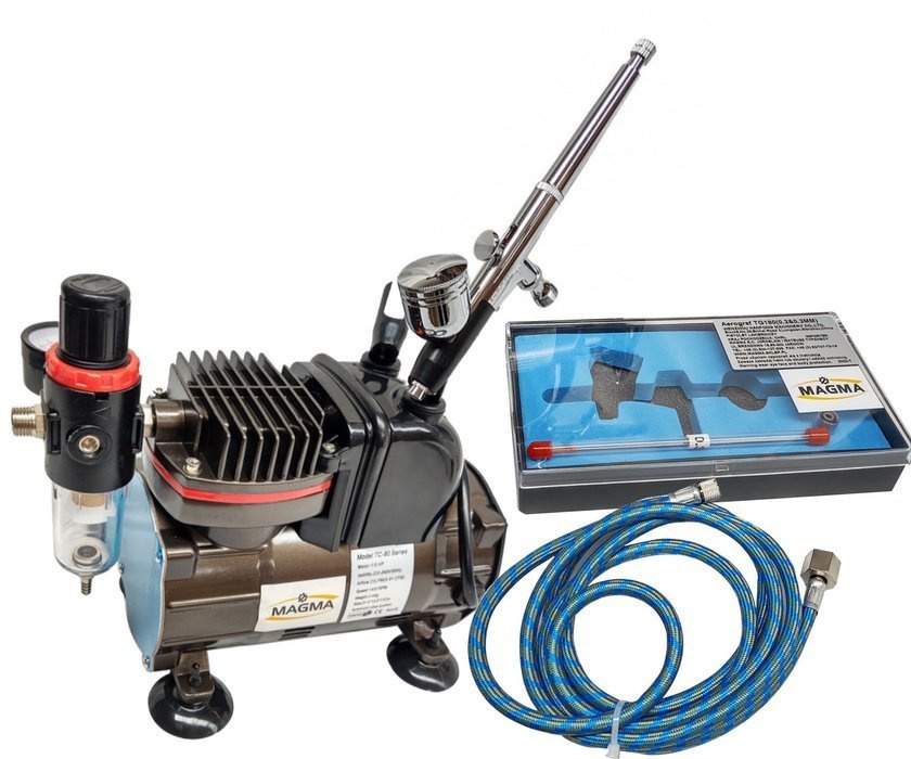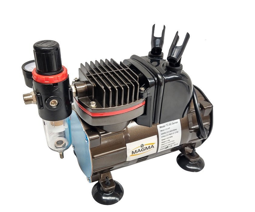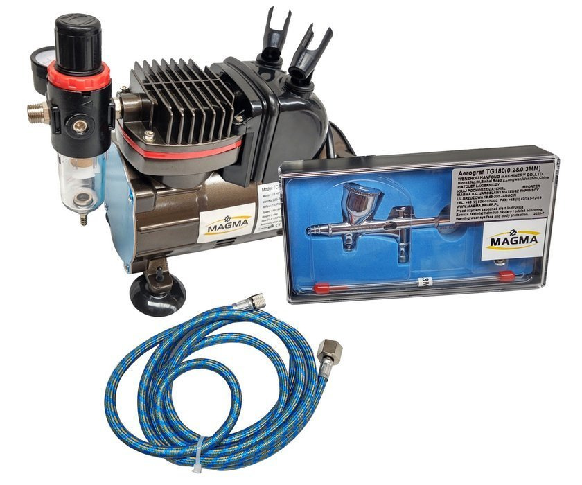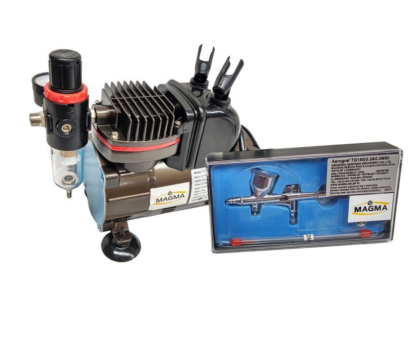Kompresor do aerografów TC-812K ze stojakiem + aerograf AB-180 dwie dysze marki Magma.