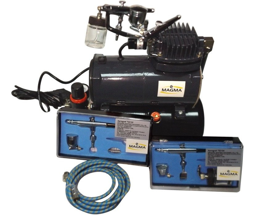 Kompresor TC-80T z butlą 3l + aerograf TG-132 i TG-134 marki Magma.