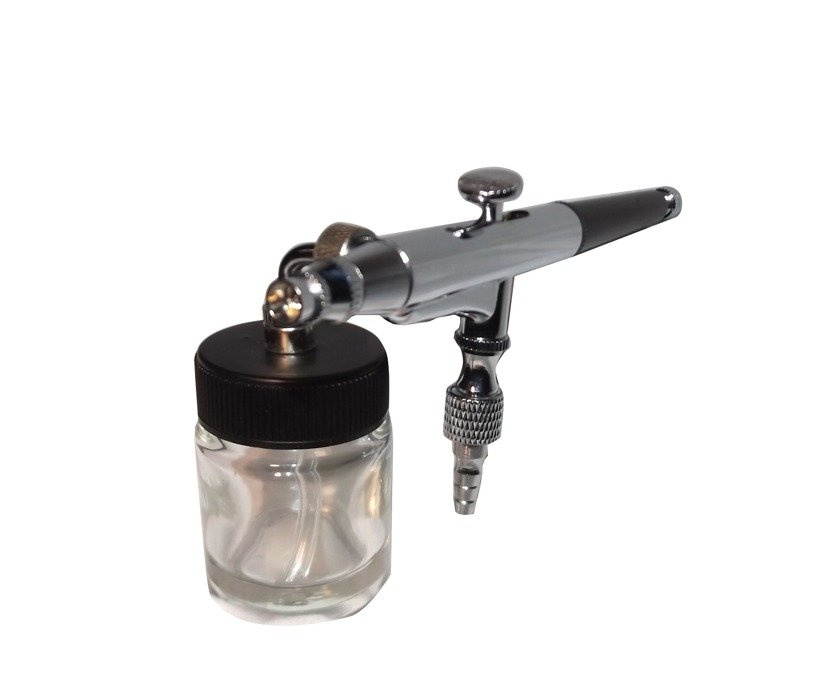 Są to aerograf dwufunkcjne co oznacza, że przyciskiem regulujemy zarówno ilość podawanago powietrza (ruchy w dół i w górę) jak również ilość farby (ruchy do tyłu i do przodu).