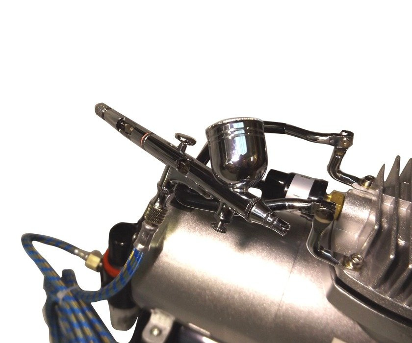 Aerograf posiada umiejscowione na przodzie aerografu pokrętło które pozwala tak dobrać ilość podawanego powietrza aby zapewnić jeszcze większą kontrolę przy malowaniu bardzo małych detali.