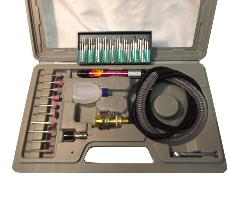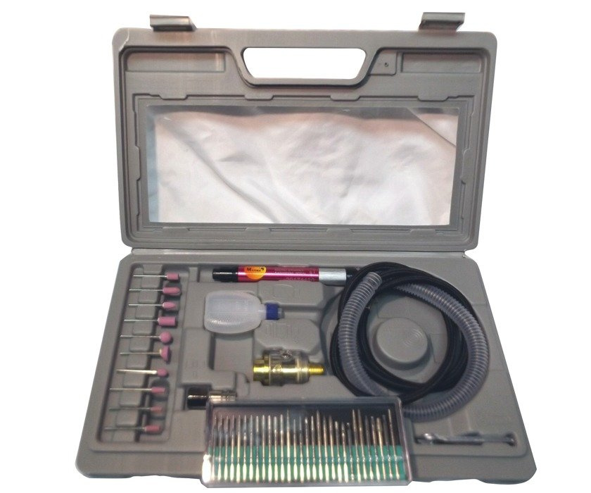 Szlifierka pneumatyczna micro palcowa mini trzpieniowa AT010K + zestaw frezów trzpieniowych 3mm GPS30