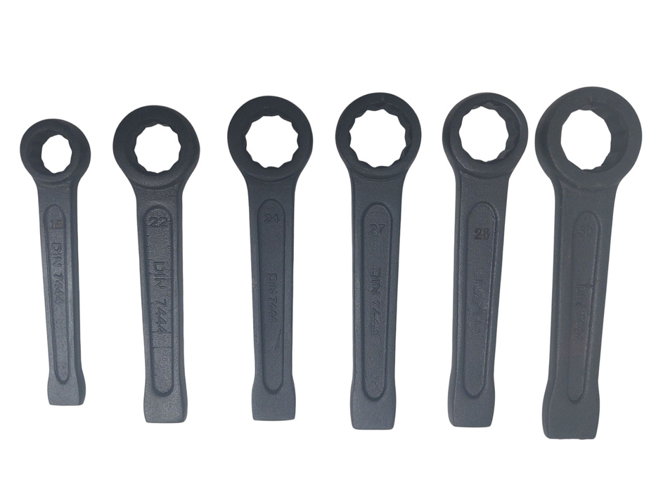 Klucze przystosowane do pobijania młotkiem dzięki temu idealnie sprawdzą się przy odkręcaniu śrub zapieczonych i mocno dokręconych.