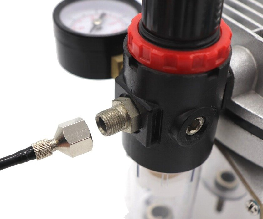 Redukcja pozwalająca na podłączenie wężyka od aerografu AB-128 TG-138 z małym gwintem do standardowych kompresorów (po zastosowaniu wtyku).