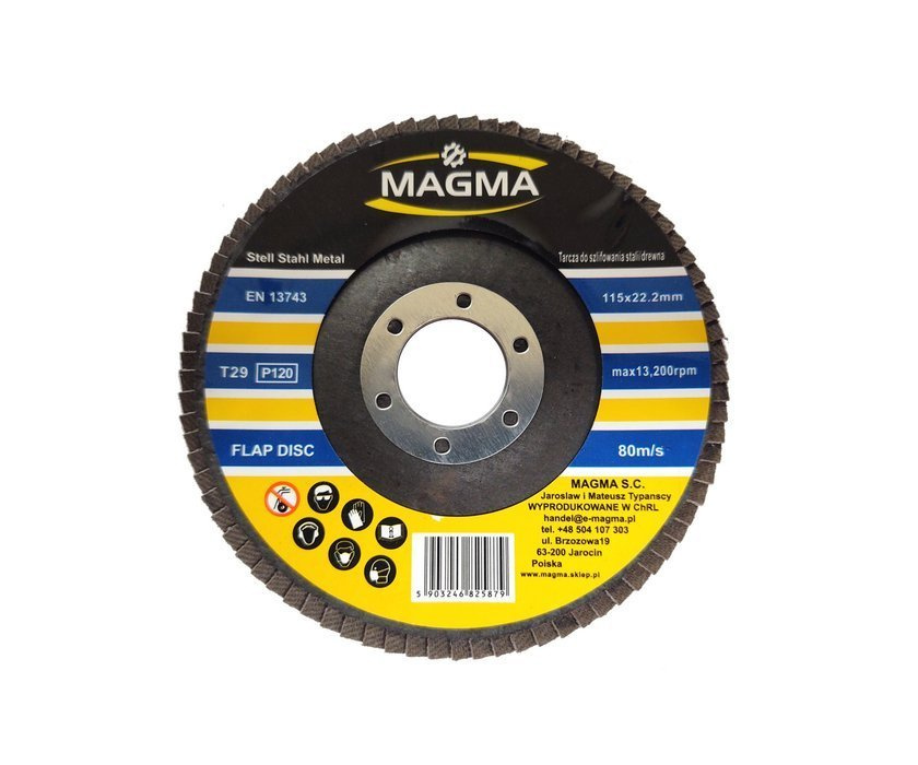 Tarcza do szlifowania metalu listkowa 115mm granulacja 120 marki Magma.