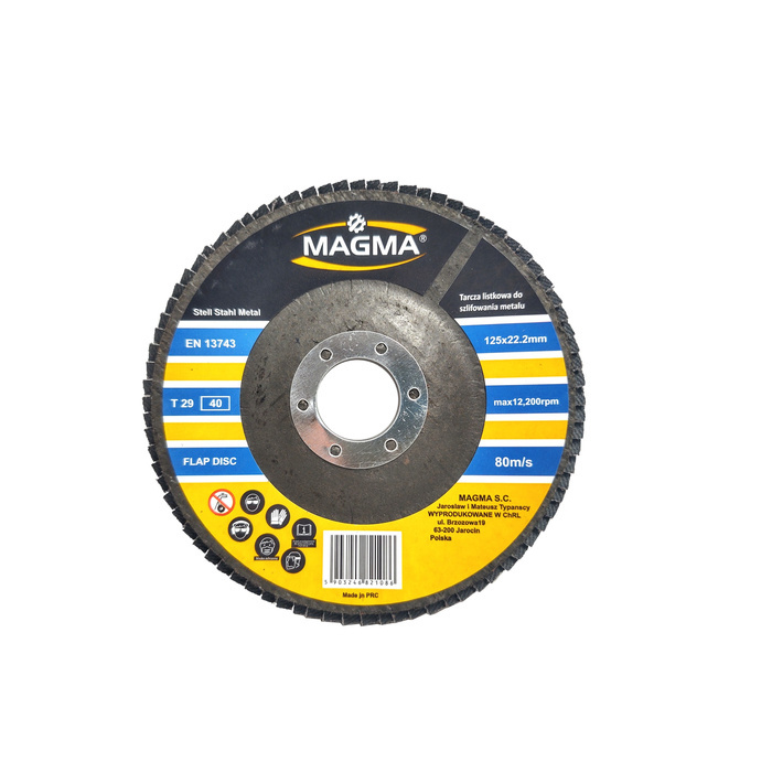 Zestaw 10 sztuk tarcz tarcze do metalu szlifowania lamelka listkowa 125mm gr40 P40 Magma Tarcza lamelkowa Elektrokorund płytkowa płytkowe 80 listków zdjęcie nr 12