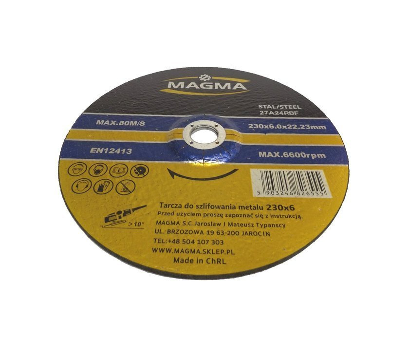 Tarcza do szlifowania metalu stali 230 x 6mm marki Magma.