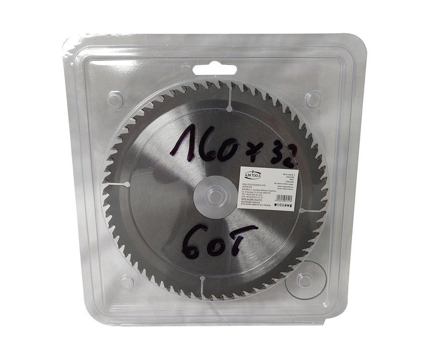 Piła widiowa do drewna 160mm 60T zębna z otworem 32mm i redukcja na 25,4mm marki AJM Tools.