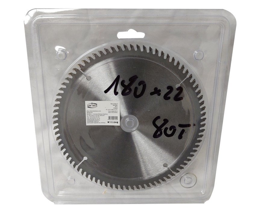Piła widiowa do drewna 180mm 80T zębna z otworem 22,2mm marki AJM Tools.