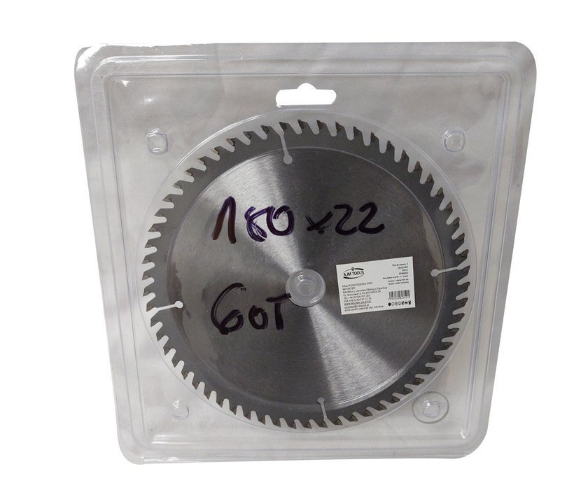 Piła widiowa do drewna 180mm 60T zębna z otworem 22,2mm i redukcja na 20mm marki AJM Tools.