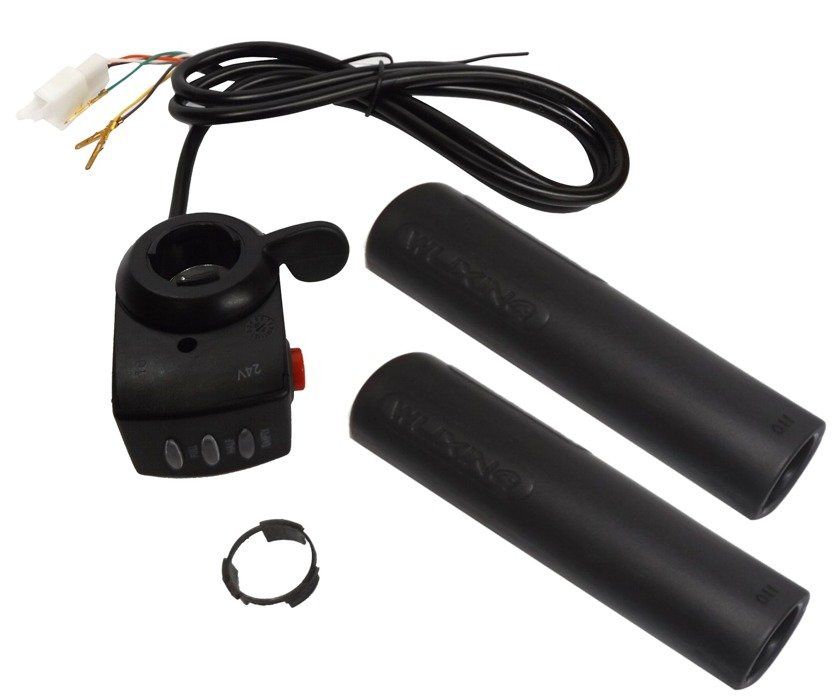 Manetka rączka gazu kciukowa na suwak 48V ze wskaźnikiem naładowania akumulatora marki Magma.