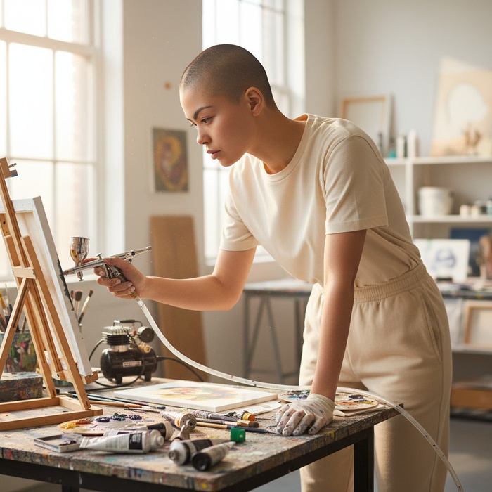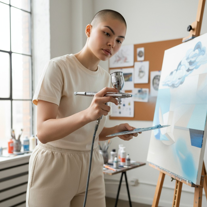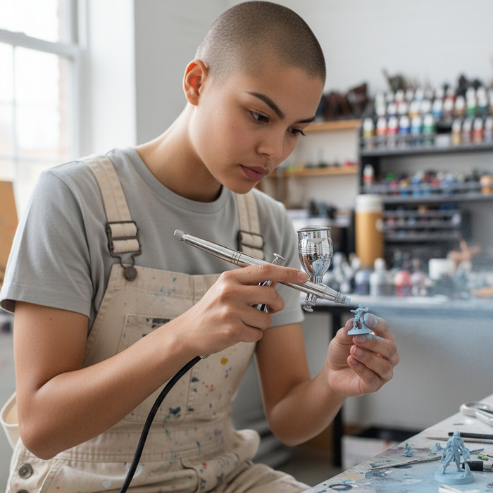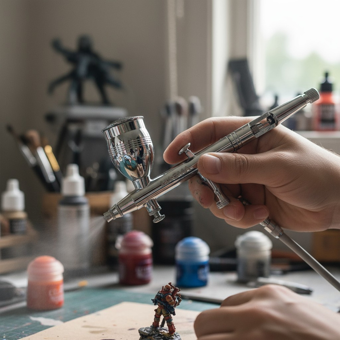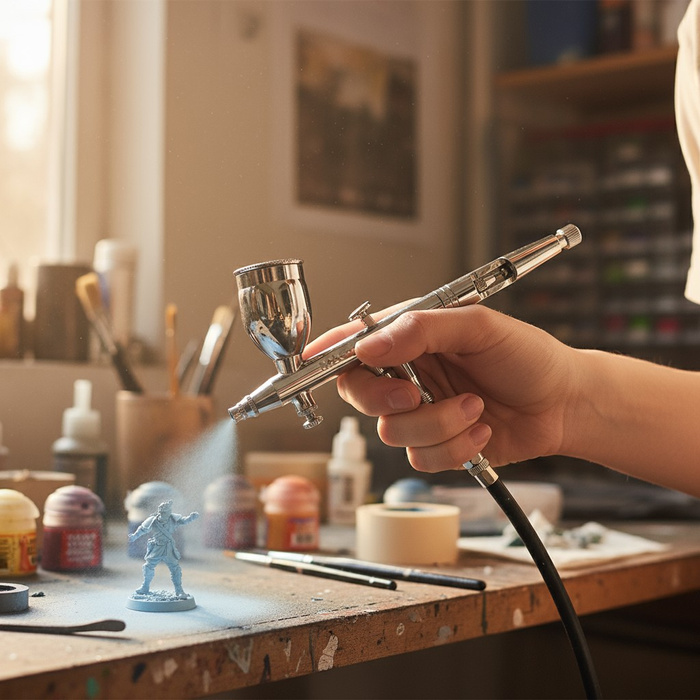 Aerograf posiada umiejscowione na przodzie aerografu pokrętło które pozwala tak dobrać ilość podawanego powietrza aby zapewnić jeszcze większą kontrolę przy malowaniu bardzo małych detali.