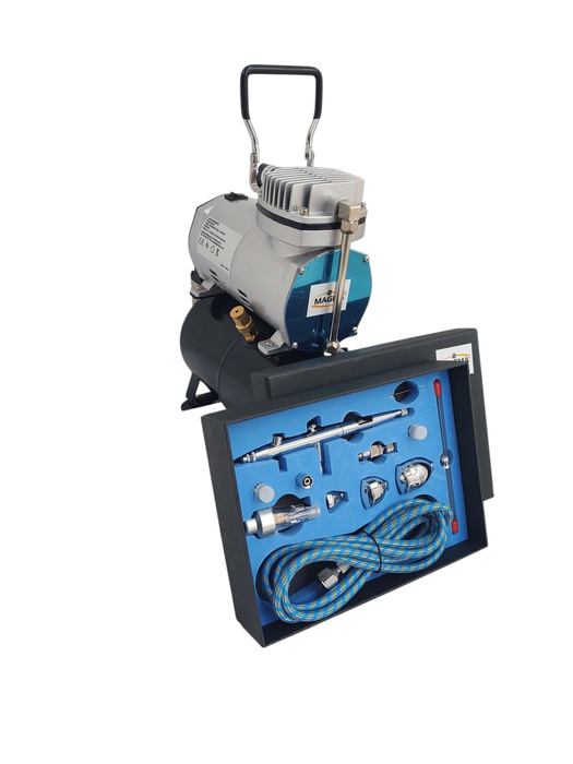 Aerograf AB-183K + kompresor z butlą TC-20T marki Magma.