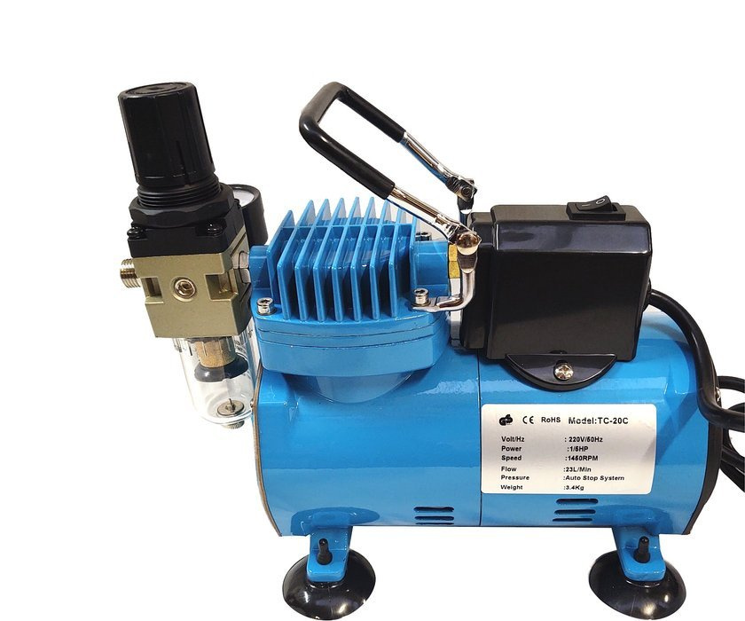 Kompresor do aerografu 4bar aerograf kompresory do aerografii sprężarka mini TC20CF niebieski z wentylatorem TC-20CF TC20C