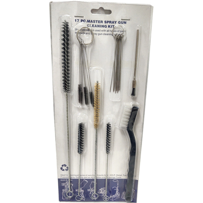 Zestaw 17 elementowy szczoteczek przetyczek od czyszczenia aerografów, pistoletów lakierniczych.