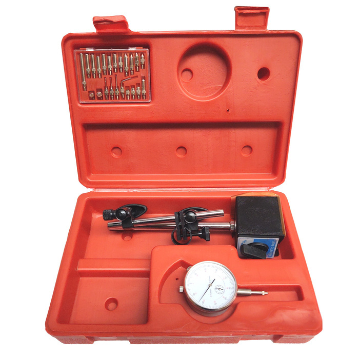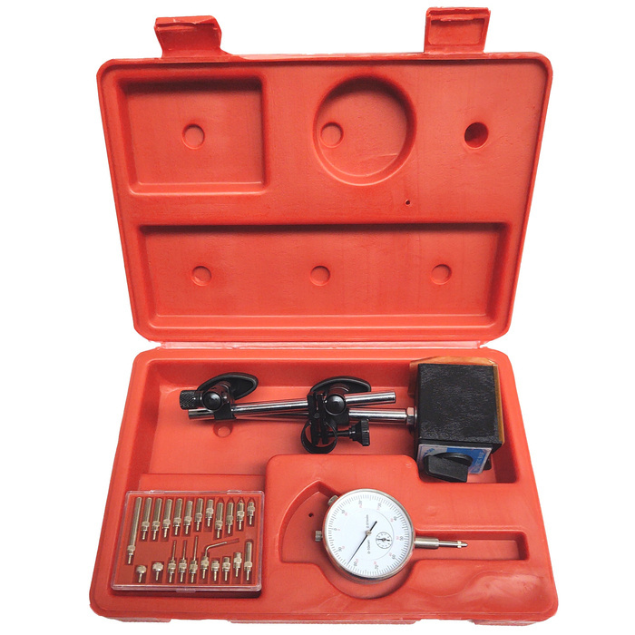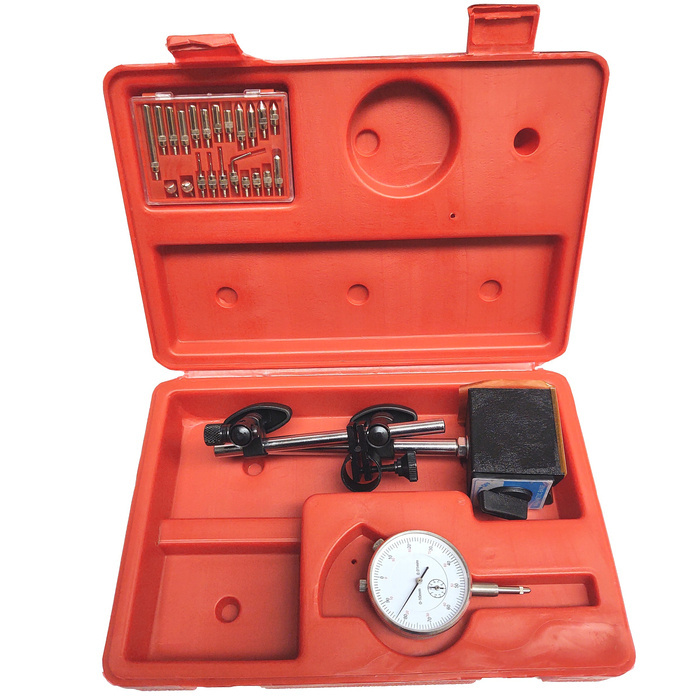 Końcówki przedłużki czujnika zegarowego 22el.+ czujnik zegarowy 10mm magnetyczny + statyw w walizce