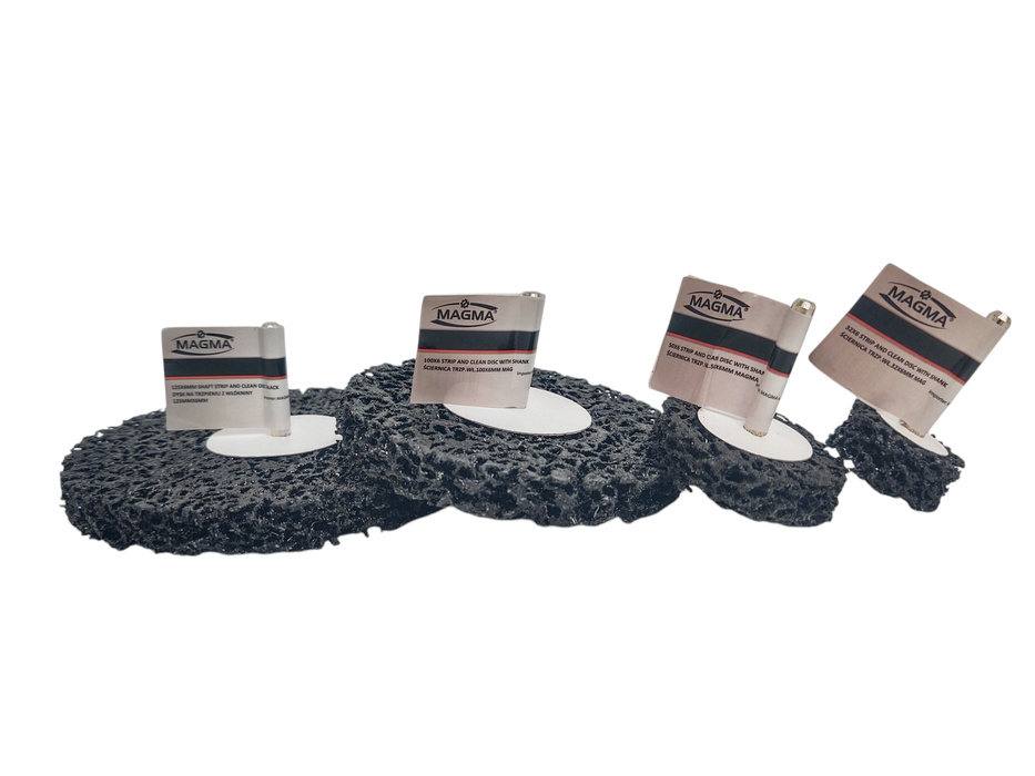 Zestaw 4 elementowy : ściernica na trzpieniu z włókniną 125x6,100x6mm, 50x6mm, 32x6mm, marki Magma.