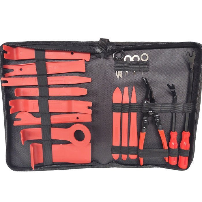 Ściągacz do tapicerki, radia 19e. 1220F + zestaw kluczy do demontażu pinów wyjmaki i złączy instalacji elektrycznych
