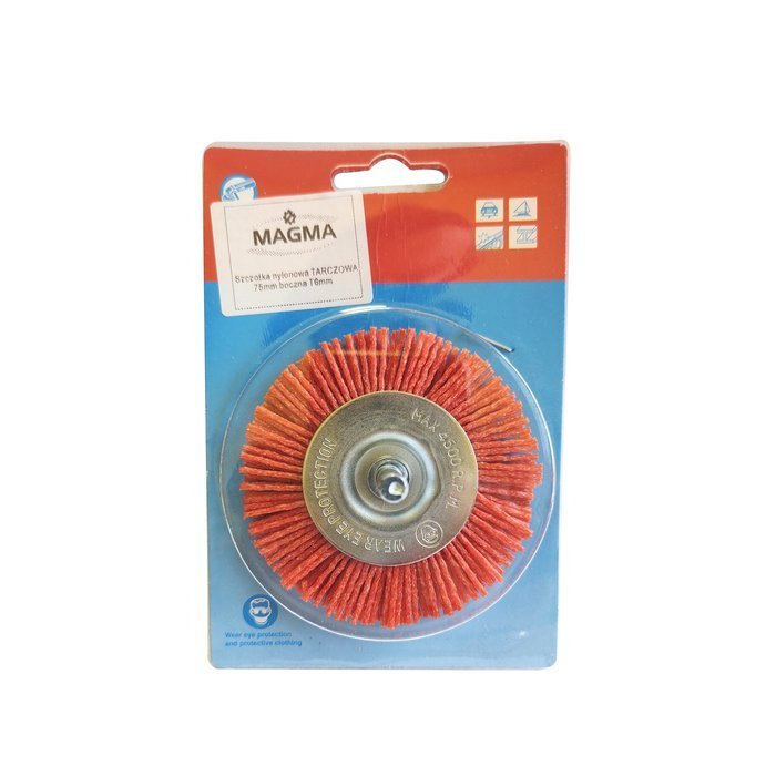 Szczotka nylonowa tarczowa na wiertarkę 75 mm/T6 mm marki Magma.