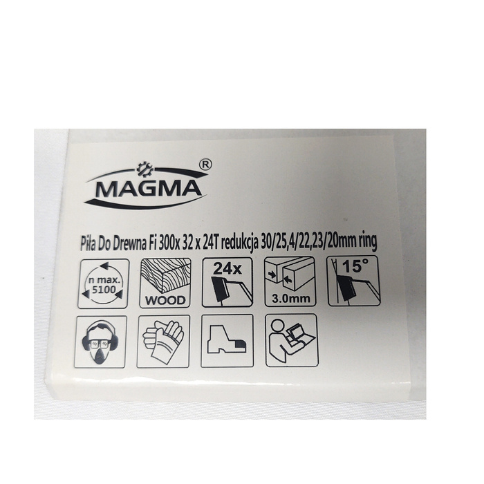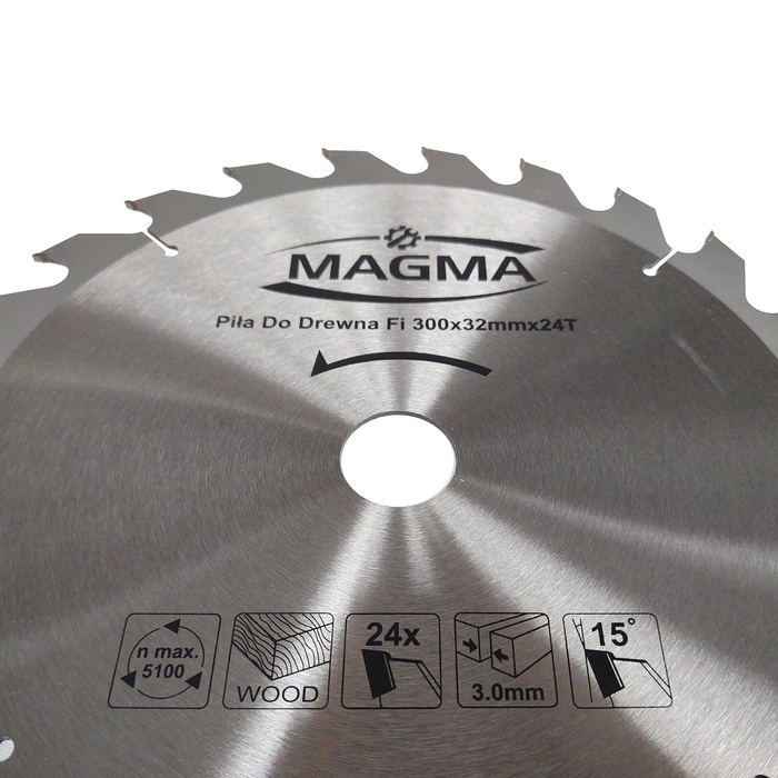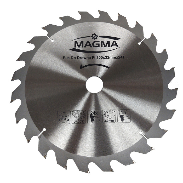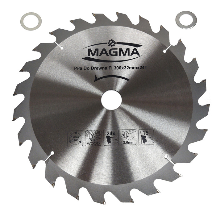 Piła widiowa do drewna 300 mm 24T zębna z otworem 32 mm redukcja na 30 mm 25,4 mm 22,23 mm 20 mm marki Magma.