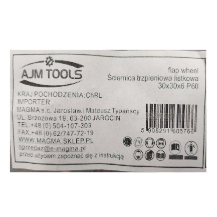Ściernica trzpieniowa listkowa 30x30x6 P60 marki AJM Tools.