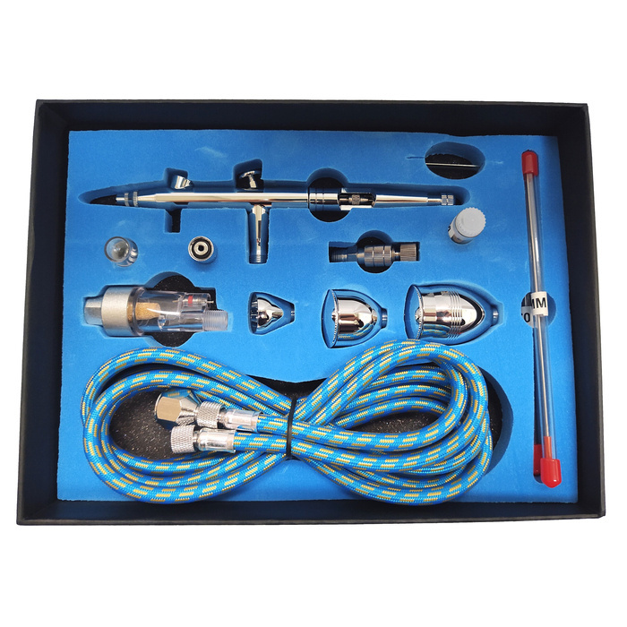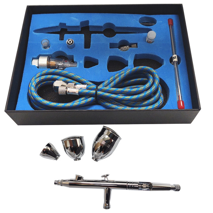 Zestaw aerograf AB-183K z trzema dyszami oraz iglicami 0,2; 0,3; 0,5 BEZ LOGO oraz dodatkowo do zestawu dokładamy gratis wężyk 1,8m.