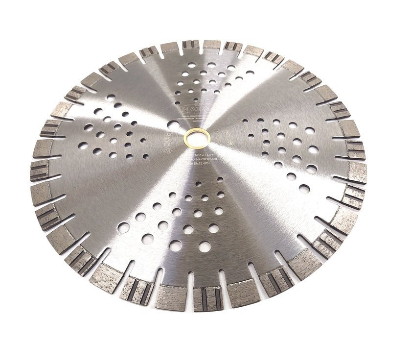 Zęby tarcz posiadają 25% diamentu syntetycznego, które prawidłowo rozmieszczone w segmencie powodują efektywny wzrost szybkości cięcia.