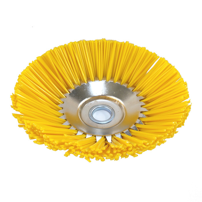 - Tarcza szczotkowa z wysokiej jakości nylonu odpornej na obciążenia siły odśrodkowej oraz bardzo wysokie obroty dochodzące nawet do 10 tys./min
