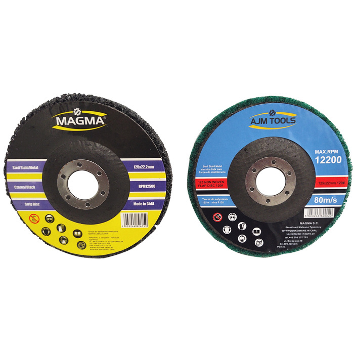 Zestaw tarcz do szlifowania włóknina 125mm włosy murzyna - czarna + tarcza do satyniarek 125 gr 120 miękka.
