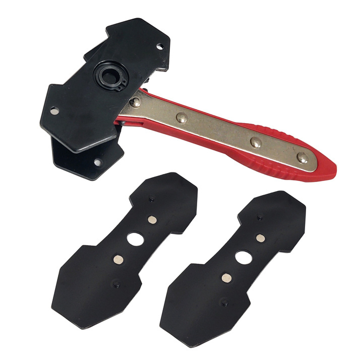 Klucz z grzechotką do montażu lub demontażu tłoczków hamulcowych z urządzenia siodełkowego hamulca, bez uszkodzenia pierścienia samo uszczelniającego lub tłoka. Separator do zacisków hamulcowych z 1, 2 lub 4 tłoczkami wciskanymi równocześnie polecamy serwisom samochodowym.