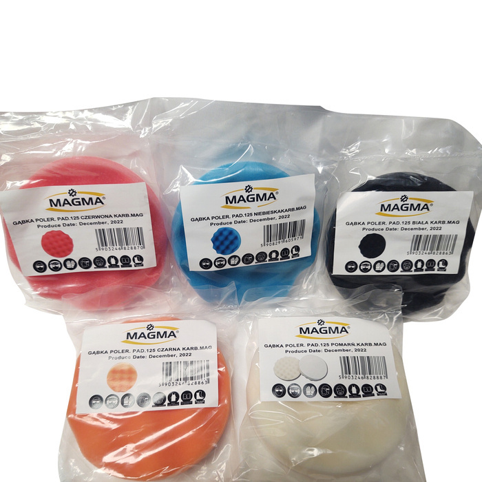 Zestaw gąbek polerskich biała czarna pomarańczowa czerwona niebieska falowana125mm marki Magma.