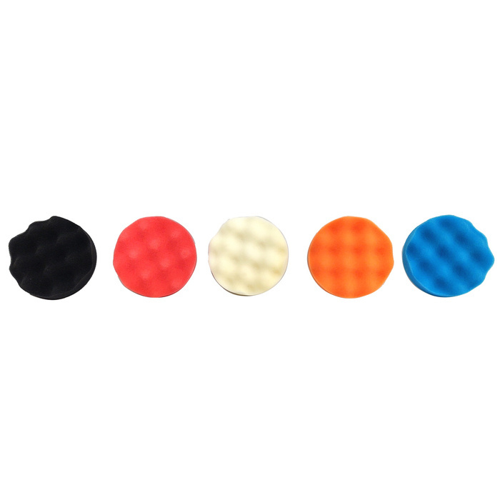 Zestaw gąbek polerskich tarcze 125 125x45 biala czarna pomarańczowa czerwona niebieska falowana / karbowana gąbka