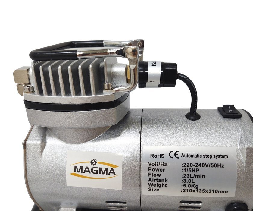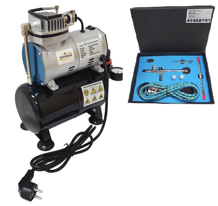Zestaw kompresor z butlą 3l TC-20T + aerograf AB-136K bez logo marki Magma.