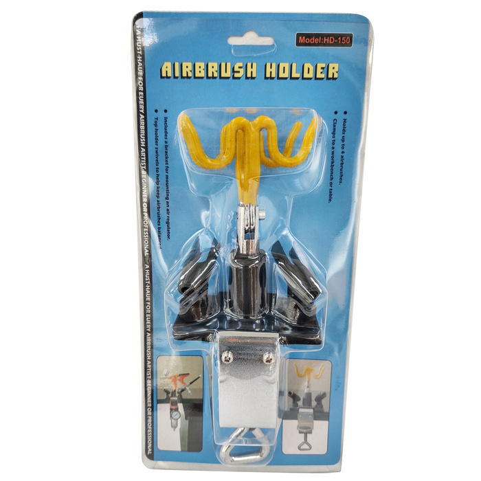 Profesjonalnie wykonany stojak do aerografów z możliwością zamocowania na blacie stołu.