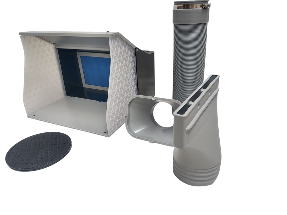 Wentylator wbudowany w tył kabiny pozwala na odprowadzenie mgły powstałej podczas malowania do rury spiro znajdującej się w zestawie. Rurę można z powodzeniem wpiąć do przystosowanych otworów wentylacyjnych.